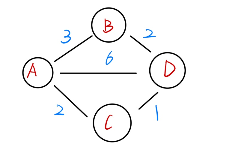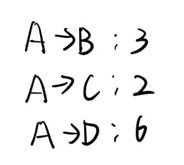 알파벳은 정점이고, 숫자는 경로를 지나는 비용이다.