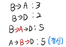 2) 정점 B에서 다른지점으로의 최단경로 탐색시