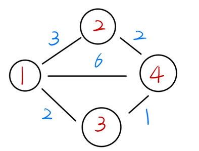 ex) 1행의 2열은 1 > 2로의 비용 3을 삽입. 1행 1열은 본인 스스로이기 때문에 비용 0