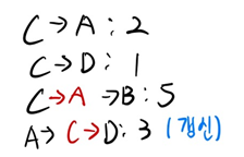 3) 정점 C에서 다른지점으로의 최단경로 탐색시