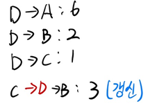 4) 정점 D에서 다른지점으로의 최단경로 탐색시