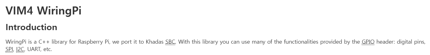 우선 khadas 공식문서를 찾아보았을때, wiringPi 자체는 포팅되어 지원한다고 되어있는데 git링크는 달아놓지 않았기에(...)