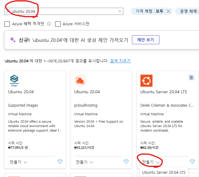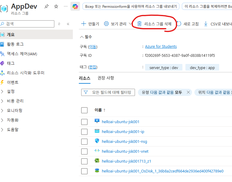Azure 계정은 이미 생성했다고 생각하고(학생용 계정),