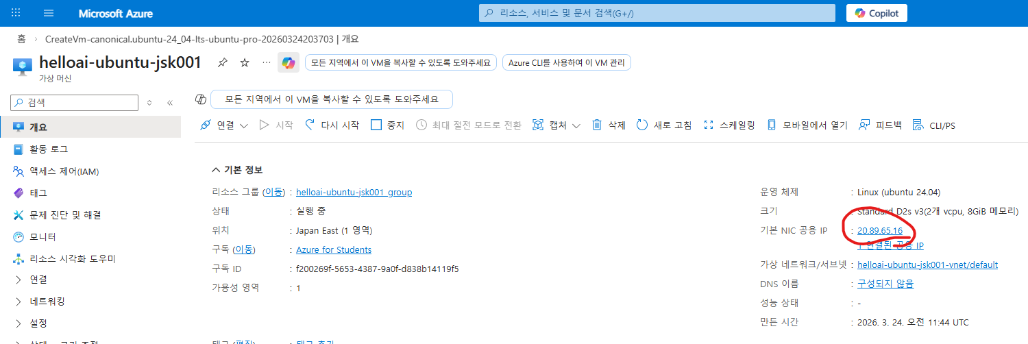 지난 포스팅에서 실습 한 것 처럼, 리소스 그룹을 생성하고, 우분투 리소스 (가상머신) 만들기 까지 진행하고서 시작한다.