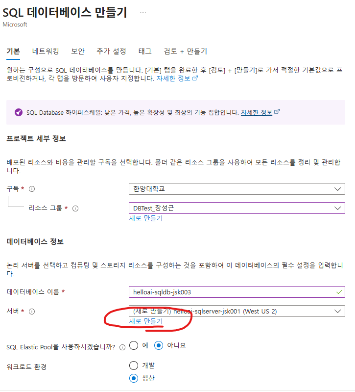 | 단일 데이터베이스 | 하이퍼스케일 스토리지(최대 100TB), 서버리스 컴퓨팅 지원 |